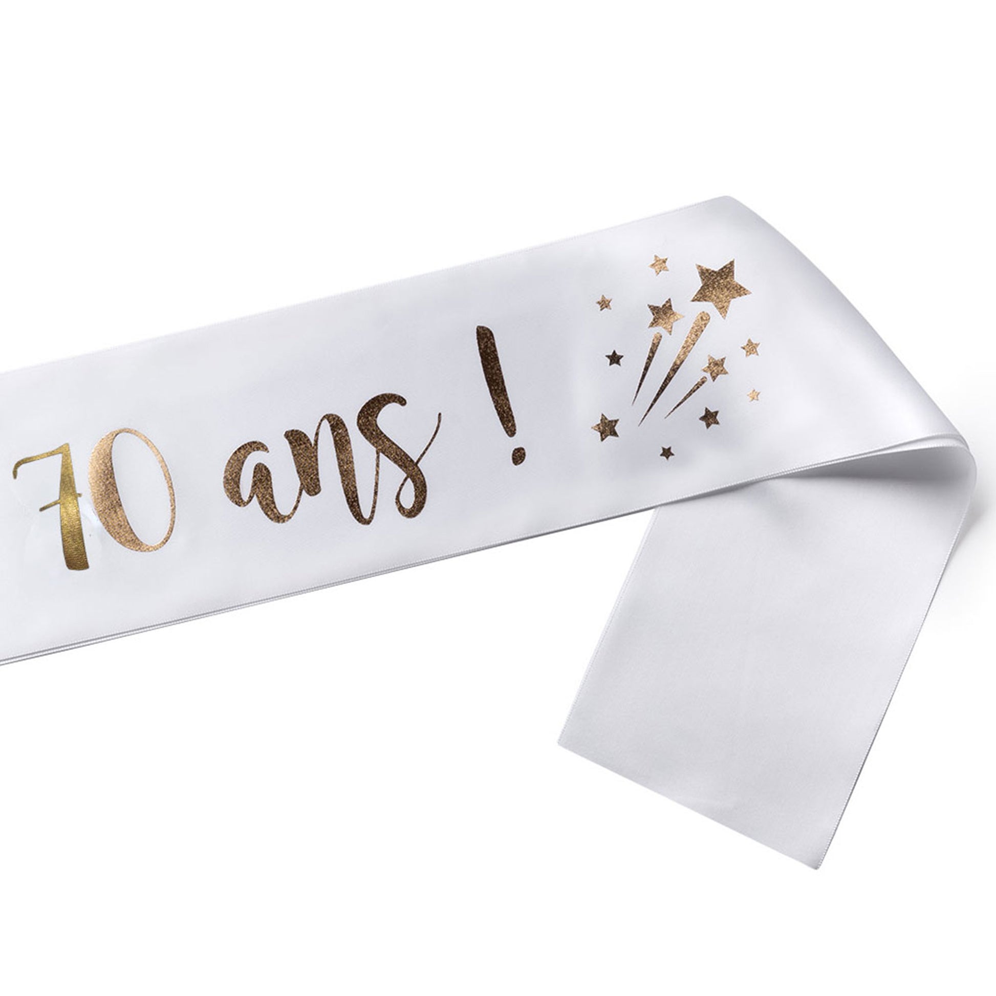 Echarpe Miss 70 ans pour fêter son 70ième Anniversaire - Blanche et Or