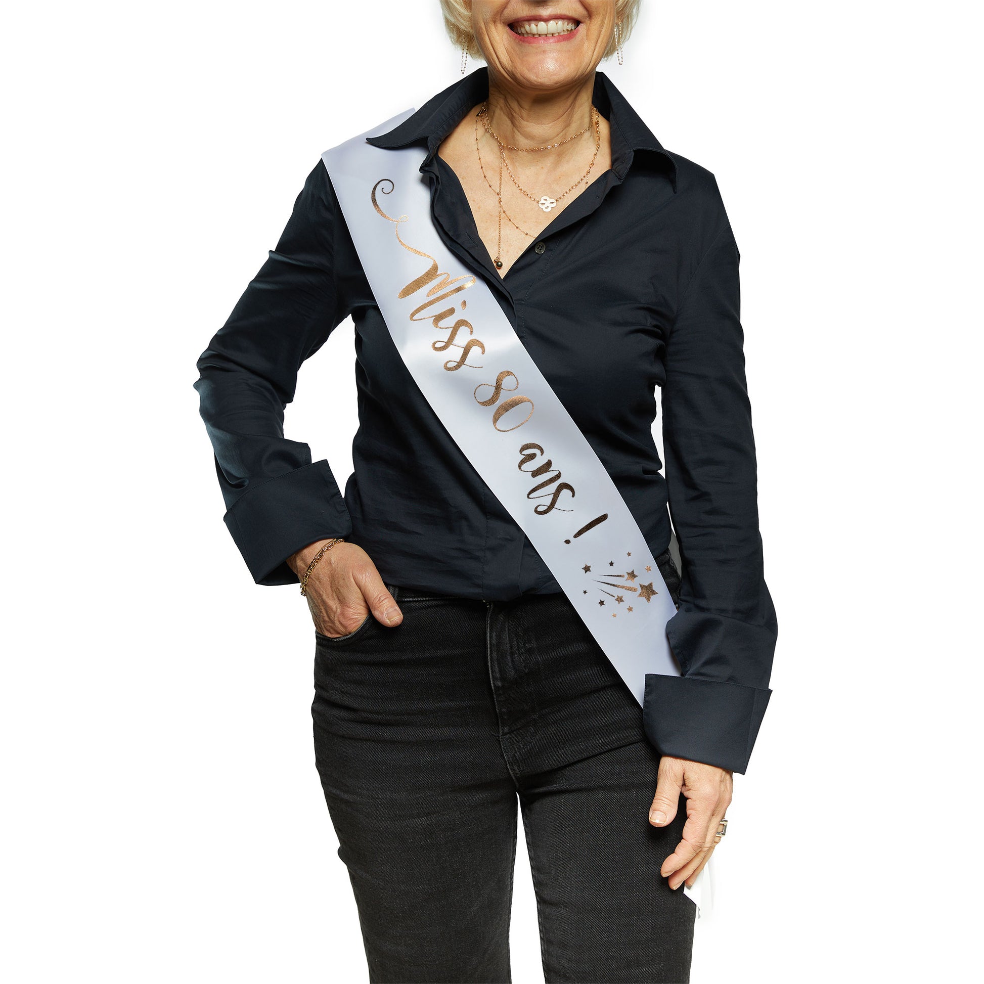 Echarpe Miss 80 ans pour fêter son 80ième Anniversaire - Blanche et Or