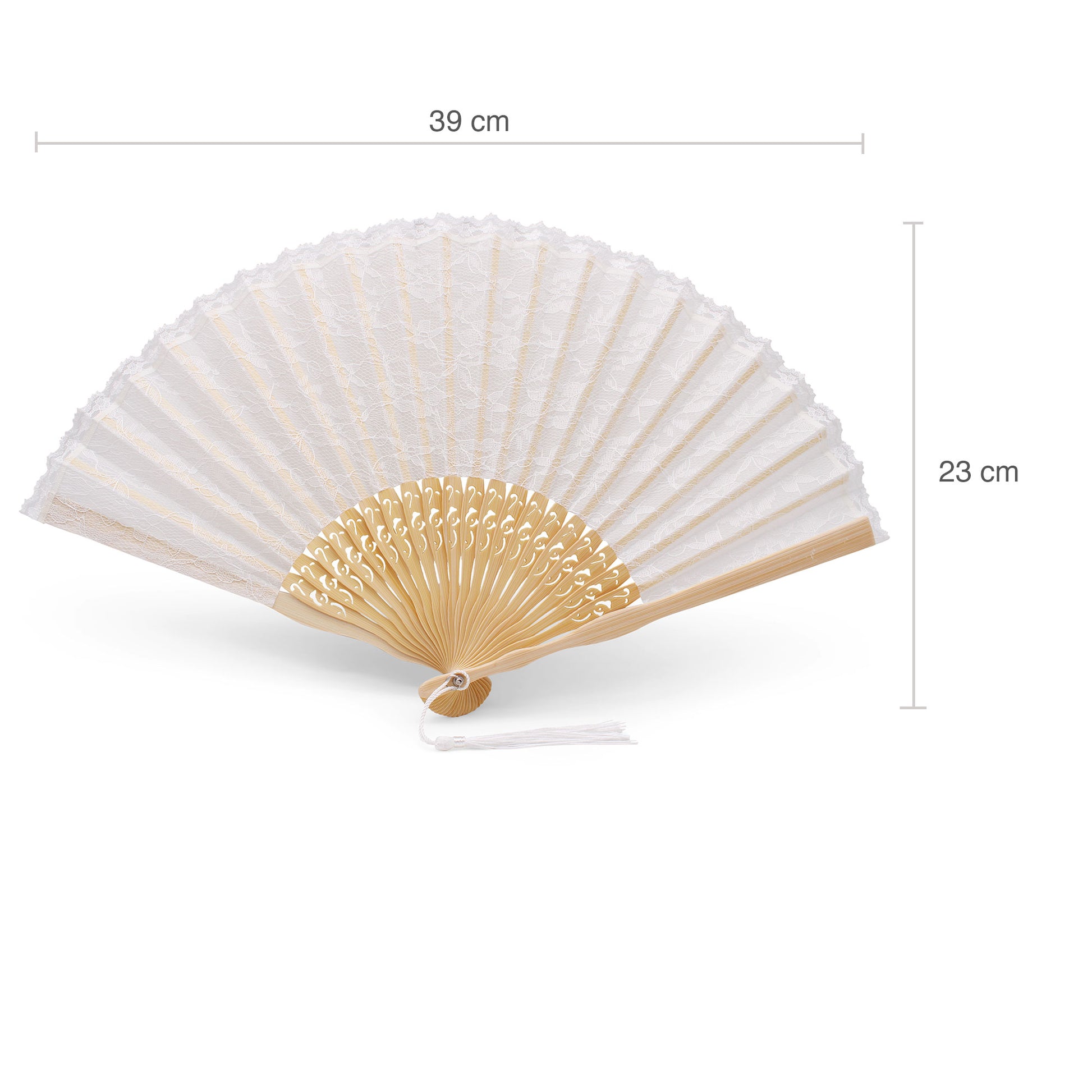 L’éventail de mariée OLILLY est l’accessoire élégant indispensable pour les mariages d’été. Conçu en bois naturel et orné d’une dentelle blanche délicate, il apporte fraîcheur et raffinement à la mariée tout au long de la journée.
