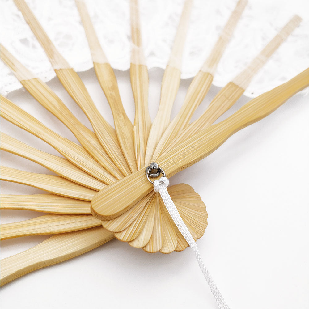 Éventail de Mariée OLILLY XL – Dentelle Blanche & Bois Naturel – 50 cm